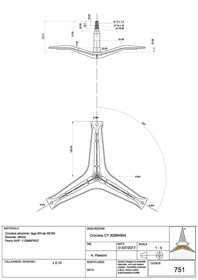 lunghezza perno 131,5mm