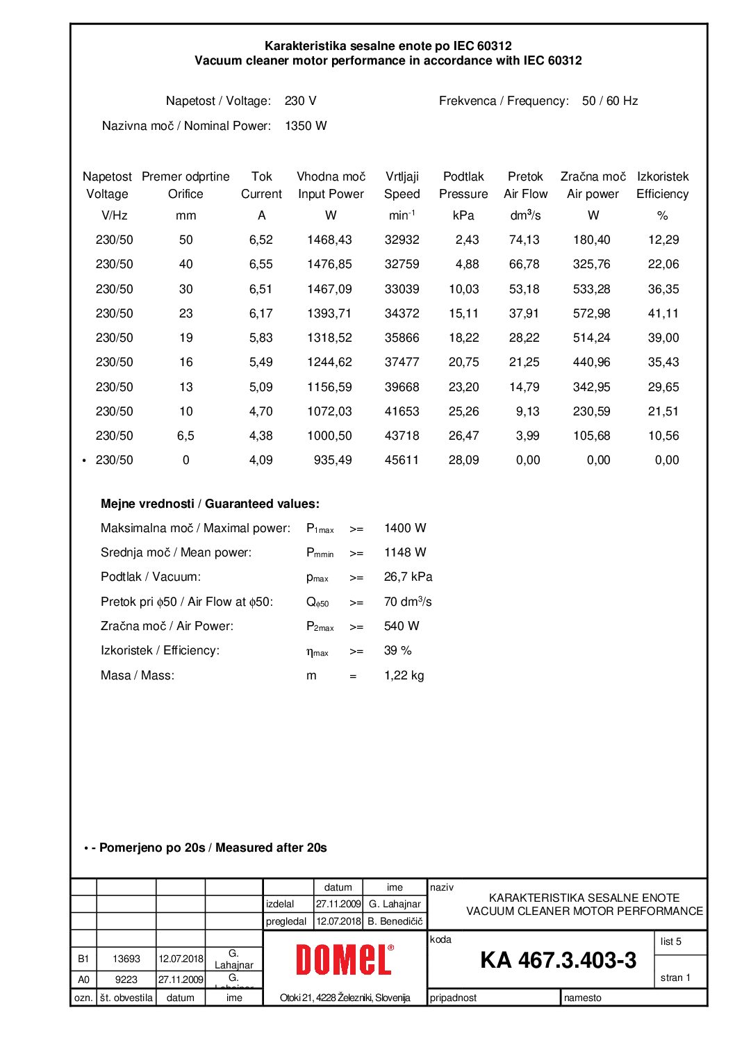 Motore Domel 1350W